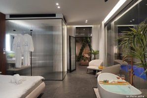 הסוויטה היוקרתית כוללת חדר שינה זוגי מרווח, סלון עם פינת ישיבה נעימה וחדר רחצה פרטי המאובזר במגבות רכות וחלוקי רחצה. תוכלו ליהנות מחווית צפייה בטלוויזיה בלוויין על מסך LCD או להירגע מול הקמין החשמלי המיוחד.