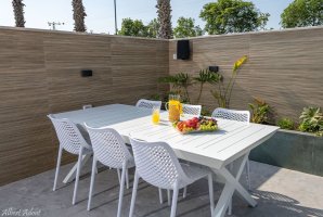 המתחם החיצוני כולל שולחן גינה ופינות ישיבה מרווחות, מיטות שיזוף ועמדת מנגל BBQ (מותר, לא בשבת), כדי שתוכלו להפיק את המרב מהשהות בחוץ.
