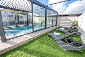 המתחם החיצוני של הסוויטה כולל בריכת שחייה פרטית מחוממת ומגודרת, להנאתכם ולבטחונכם. פינות ישיבה, ריהוט גן יוקרתי ומיטות שיזוף זמינים לכם לשעות של רוגע מפנקות. תוכלו גם להשתמש בעמדת בר-בי-קיו (לא בשבת).