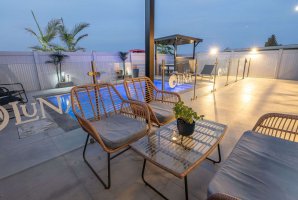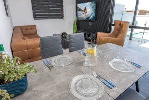 המתחם החיצוני כולל פינות ישיבה נוחות, שולחן גינה וריהוט גן חיצוני כך שתוכלו ליהנות מארוחות בחוץ או להשתזף על מיטות השיזוף. ניתן גם לנצל את עמדת המנגל BBQ להכנת ארוחות טעימות.