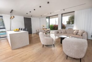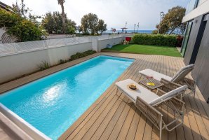 במתחם החיצוני תמצאו בריכת שחייה פרטית מחוממת, מיטות שיזוף נוחות, פינות ישיבה, שולחן גינה ועמדת מנגל BBQ. כל זה נגיש גם לאנשים עם צרכים מיוחדים, כולל חנייה פרטית.