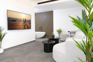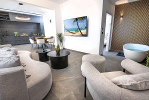 הסוויטה מציעה עיצוב מודרני ומהודר המותאם במיוחד לזוגות. עם אבזור מלא הכולל מסך LCD, פרטנר TV, ופינת ישיבה נוחה, תוכלו להירגע וליהנות מערב רומנטי. המטבח המאובזר כולל מכונת אספרסו, כיריים, מקרר וטוסטר אובן - כל מה שצריך בשביל להכין ארוחות מפנקות.