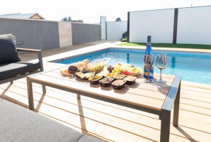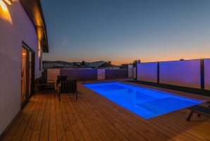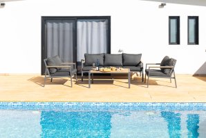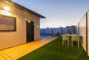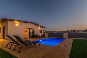 המתחם החיצוני כולל בריכת שחייה פרטית מחוממת, מיטות שיזוף, פינות ישיבה מעוצבות וערסל לנוחות מרבית. ניתן גם ליהנות מעמדת מנגל BBQ (לא בשבת) כדי לשדרג את החוויה הקולינרית שלכם.