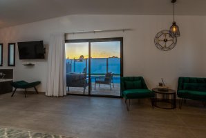 הסוויטה המפוארת מצוידת בכל הדרוש לחופשה חווייתית ופרטית. תהנו ממסך LCD עם חיבור ל-YES טלוויזיה בלוויין, פינת ישיבה נוחה ושולחן אוכל מפואר. במטבח תמצאו כיריים, קומקום חשמלי ומקרר קטן, כך שתוכלו להרגיש בבית גם במהלך חופשתכם.