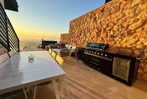 בחצר תוכלו למצוא מטבח חיצוני מאובזר, פינות ישיבה מרווחות, ערסל וריהוט גן איכותי. אם חשקה נפשכם במנגל, ישנה עמדת BBQ זמינה (מותר, לא בשבת). כמובן, ישנן מיטות שיזוף לשעות השמש הנעימות.