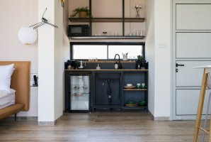 איזה אבזור קיים במטבח של סוויטת טו בי Two Be?האבזור הקיים במטבח של סוויטת טו בי Two Be: קומקום חשמלי, מכונת אספרסו / קפה, מקרר קטן.