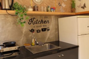 איזה אבזור קיים במטבח של אירוח גיואנה באילת?האבזור הקיים במטבח של אירוח גיואנה באילת: קומקום חשמלי, כיריים, מיקרוגל, מקרר, טוסטר אובן.