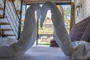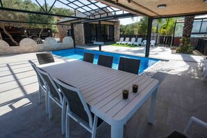 הוילה מכילה בריכת שחייה פרטית מחוממת מגודרת ומקורה, שמציעה חוויה ייחודית עם אפשרות לשחייה בכל עונות השנה. בנוסף, תמצאו ג'קוזי ספא מפנק ובריכת שחייה מקורה ומגודרת לבטיחות מושלמת. המתחם החיצוני מרהיב ומציע שולחן פינג פונג, טאבון ושולחן גינה מאובזר. האורחים יכולים ליהנות מארוחות שף, חצי פנסיון וארוחות כשרות בתיאום מראש ובתוספת תשלום.