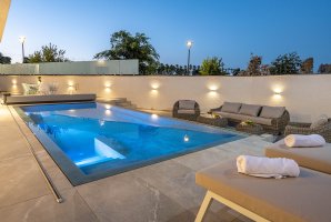 הוילה מגיעה עם בריכת שחייה פרטית, מחוממת ומגודרת, המבטיחה שעות של הנאה. במתחם החיצוני הפסטורלי תמצאו פינות ישיבה, מיטות שיזוף וריהוט גן מושלם למנוחה. אם אתם חובבי בישול, עמדת המנגל (לא בשבת) ופינת האוכל המפנקת יאפשרו לכם ליצור ארוחות בלתי נשכחות.