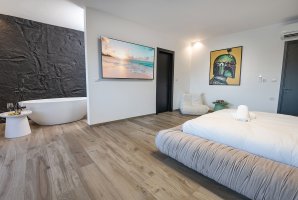פנים הוילה מאובזר בכל הנדרש לחופשה מודרנית ואיכותית, כולל מסכי LCD עם שירותי טלוויזיה בלוויין של YES, מטבח מאובזר עם מכונת אספרסו, מדיח כלים ועוד. בנוסף, תוכלו ליהנות מאינטרנט אלחוטי זמין וחנייה פרטית נוחה. ארוחות שף וחצי פנסיון זמינות בהזמנה מראש.