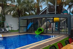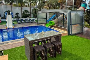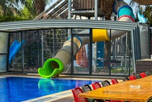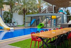 הווילה מצוידת בבריכת שחייה פרטית מקורה, מגודרת ומחוממת, לצד ג'קוזי ספא מפנק - כל מה שצריך לחוויית רגיעה מושלמת. החצר החיצונית כוללת מגרש כדורגל, פינג פונג, ומתקני חצר לילדים, וכל זה עם מטבח חיצוני מאובזר ופינות ישיבה מרווחות.