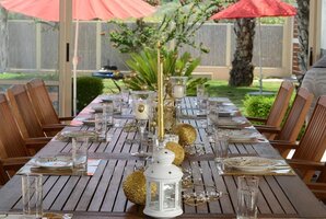 המתחם החיצוני כולל עמדת מנגל BBQ, שולחן פינג פונג, כדורגל שולחן ומטבח חיצוני מאובזר. פינות ישיבה וריהוט גן חיצוני מאפשרים ליהנות מהנוף הגלילי השקט.