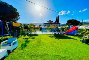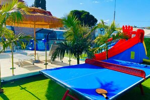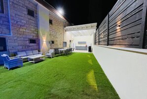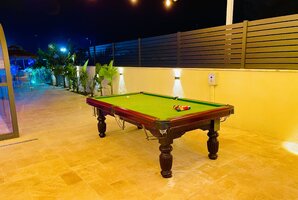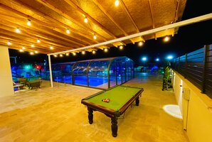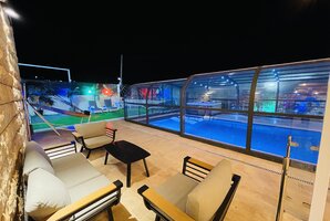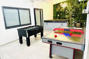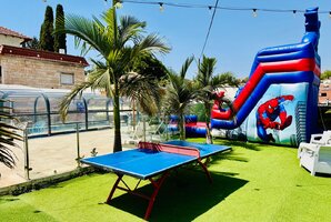 במתחם החיצוני תמצאו מגרש כדורסל, מגרש כדורעף, שולחנות פינג פונג וכדורגל שולחן, ועוד מתקנים רבים להנאתכם. פינות ישיבה מפנקות, מטבח חיצוני מאובזר ועמדת מנגל BBQ משלימים את החוויה.