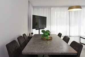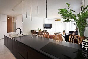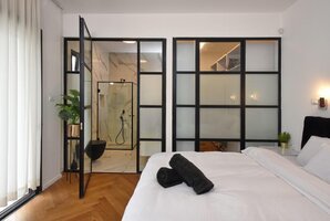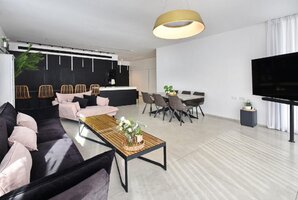 המטבח המודרני והמאובזר כולל תנור, מכונת אספרסו עם קפסולות, מדיח כלים ומכונת קרח. כל מה שצריך להכנת ארוחות מפנקות נמצא בהישג ידכם.