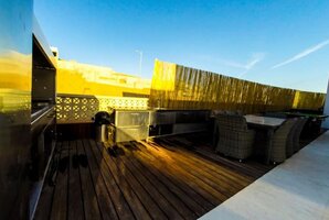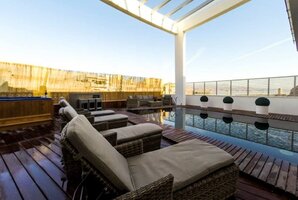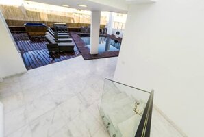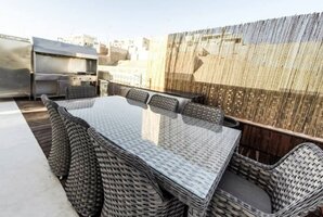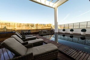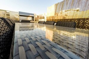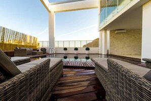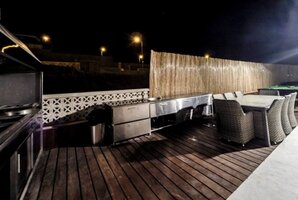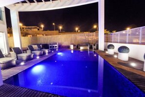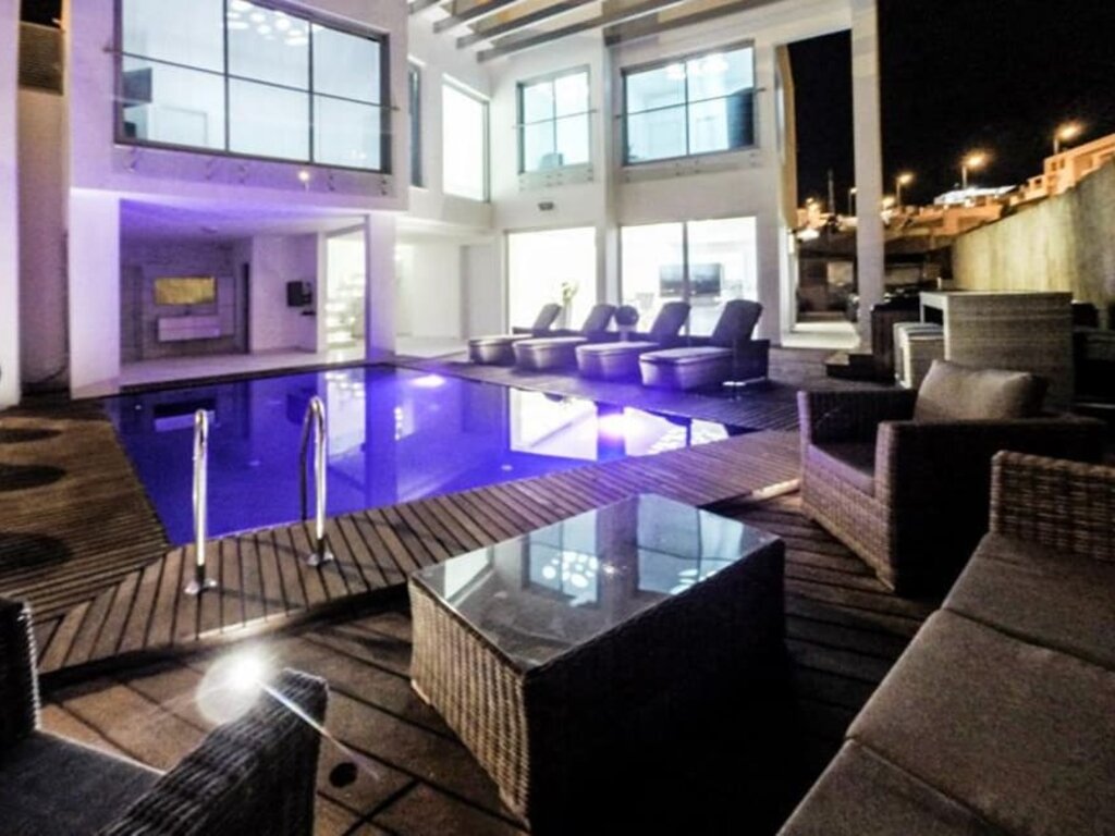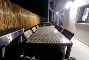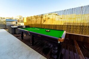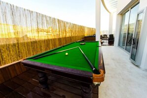 - מתחם חיצוני עם פינות ישיבה, ריהוט גן יוקרתי, שולחן סנוקר חיצוני ומיטות שיזוף.