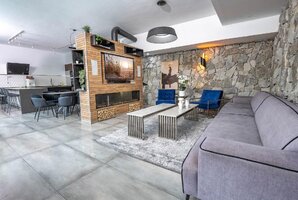 בפנים הוילה תמצאו סלון מפואר עם קמין גז, מסכי LCD, ושירותי טלוויזיה בלוויין YES ו-Netflix. המטבח המודרני מאובזר היטב וכולל מכונת אספרסו, כיריים ותנור, לצד פלטה לשבת ומיחם עבור הציבור הדתי. נוכחות בית כנסת קרוב מוסיפה לנוחות של אורחינו הדתיים.