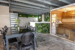 הוילה כוללת בריכת שחייה פרטית מחוממת, מגודרת ומקורה, יחד עם ג'קוזי ספא נעים ומפנק. בנוסף, חובבי הספורט יכולים ליהנות ממשחקי פינג פונג וכדורגל שולחן, בעוד הילדים ימצאו הנאה במתקני החצר ובטרמפולינה. אם אתם מחפשים רגע של שקט, פינות הישיבה המפנקות ומיטות השיזוף הן המקום המושלם להירגע ולהתפנק.