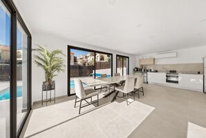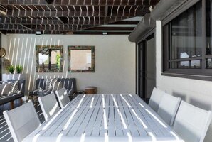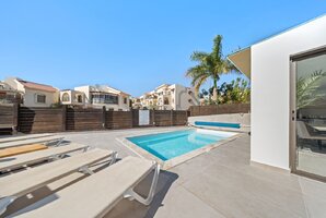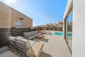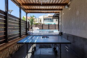 המתחם החיצוני מציע בריכת שחייה מגודרת ומחוממת, כך שתוכלו ליהנות ממנה בכל מזג אוויר. בנוסף, תמצאו ג'קוזי ספא מפנק, מיטות שיזוף וריהוט גן חיצוני. אם אתם אוהבים פעילויות, תיהנו ממשחק פינג פונג ועמדת מנגל BBQ.