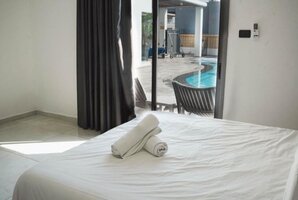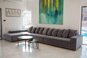 הווילה מצוידת במטבח חיצוני מאובזר, פינות ישיבה מפוארות, ערסל, ושולחן פינג פונג להנאתכם. בנוסף, תוכלו להתפנק עם מכונת אספרסו ולקבל קפסולות כיבוד.