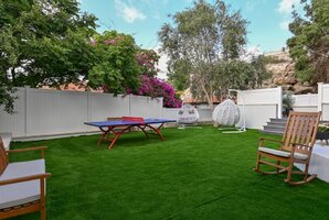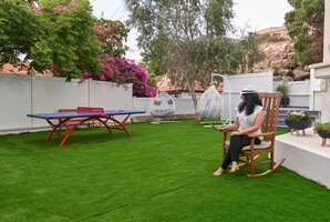 במתחם החיצוני תמצאו פינות ישיבה מעוצבות, ערסלים, מיטות שיזוף ועמדת מנגל BBQ. עבור חובבי הספורט, שולחן פינג פונג מחכה לכם. והכל מול נוף גלילי פנורמי מהמם המשלב גם נוף לים.