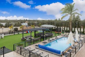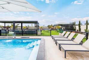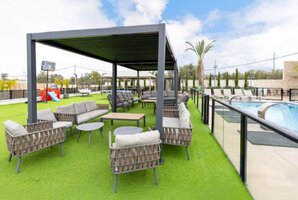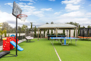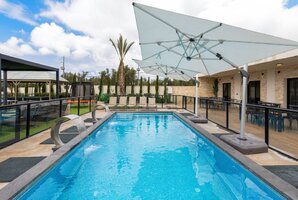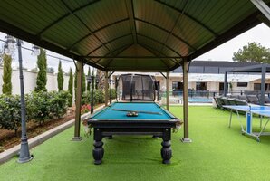 המתחם החיצוני של הוילה כולל בריכת שחייה פרטית, מגודרת ומחוממת, מטבח חיצוני מאובזר, פינות ישיבה נוחות, עמדת מנגל BBQ ושולחן סנוקר חיצוני. לאורחים המגיעים לחווית ספורט, ישנו גם מגרש כדורסל ופינג פונג.