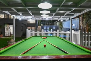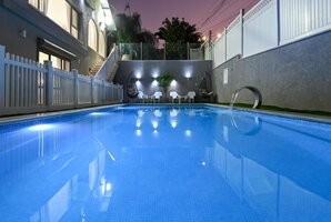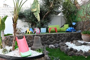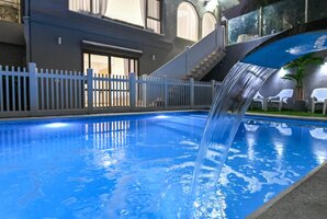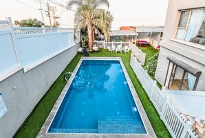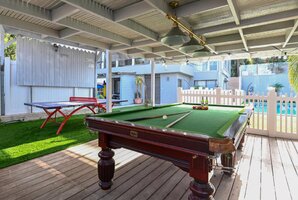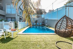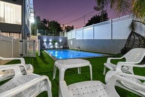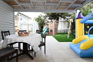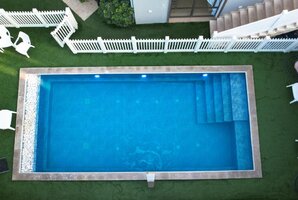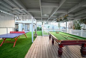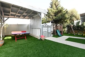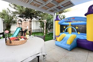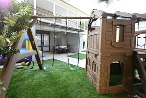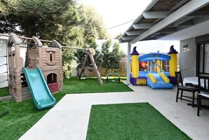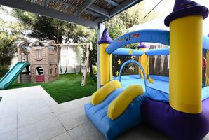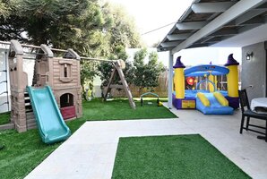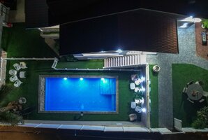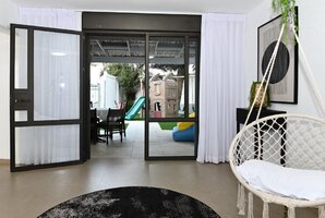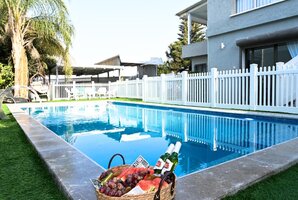 - המתחם החיצוני כולל בריכת שחייה מגודרת, מחוממת ומקורה, לצד מתקני חצר לילדים, פינות ישיבה ועמדת מנגל BBQ (מותר, לא בשבת).