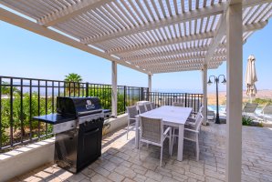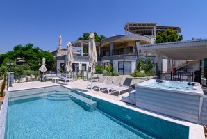 במתחם החיצוני של הווילה תיהנו מבריכת שחייה פרטית ומגודרת, ג'קוזי ספא מפנק, מיטות שיזוף ושולחן גינה מושלם לארוחות בחוץ. הריהוט הגן החיצוני ופינות הישיבה המודרניות יעניקו לכם תחושת נוחות ויוקרה.