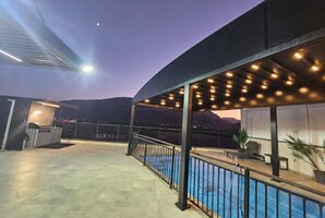 במתחם החיצוני תמצאו מטבח חיצוני מאובזר, עמדת מנגל BBQ, ערסל, פינות ישיבה מפנקות ושולחנות משחק כמו כדורגל שולחן והוקי אוויר.