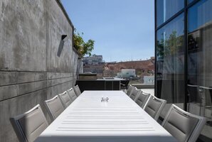 במתחם החיצוני תמצאו פינות ישיבה נוחות, ריהוט גן איכותי, מיטות שיזוף, טאבון ועמדת מנגל BBQ. בנוסף, ישנם גם פינג פונג ושולחן גינה, כך שתוכלו ליהנות מזמן משפחתי איכותי ומשחקים מרתקים.
