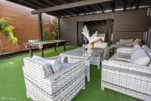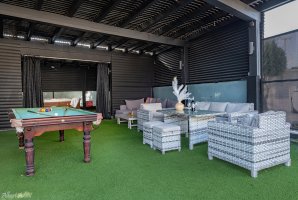 המתחם החיצוני של האחוזה כולל בריכת שחייה פרטית מגודרת ומחוממת, כמו גם ג'קוזי ספא מפנק. תוכלו ליהנות מרגעי נחת בפינות הישיבה המעוצבות, לשחק פינג פונג או סנוקר חיצוני, וליהנות מארוחות ברביקיו בעמדת ה-BBQ המאובזרת.