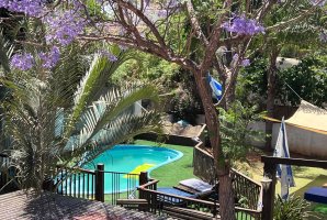 במתחם החיצוני תמצאו בריכת שחייה פרטית מפנקת, מתקני חצר לילדים ופינות ישיבה נוחות מוקפות בנוף פנורמי עוצר נשימה. ניתן ליהנות מארוחות בחוץ עם מטבח חיצוני מאובזר, עמדת מנגל BBQ ושולחן גינה. המקום כולל גם ערסל ומיטות שיזוף להנאה מושלמת.