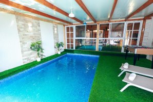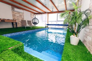 הצימר מצויד בבריכת שחייה פרטית, מגודרת, מחוממת ומקורה, המאפשרת לכם ליהנות מרגעי רוגע בכל מזג אוויר. בחוץ, תמצאו פינות ישיבה מעוצבות, ערסלים ומיטות שיזוף המזמינות אתכם להירגע תחת השמש.