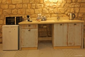 איזה אבזור קיים במטבח של בית האומנים?האבזור הקיים במטבח של בית האומנים: קומקום חשמלי, מכונת אספרסו / קפה, כיריים, טוסטר, מיקרוגל, מקרר קטן.