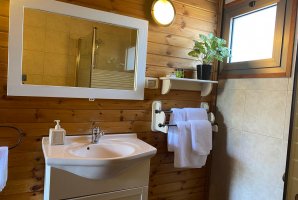איזה אבזור קיים במטבח של בקתה בכפר ברמות?האבזור הקיים במטבח של בקתה בכפר ברמות: קומקום חשמלי, מכונת אספרסו / קפה, מיקרוגל, מקרר קטן.