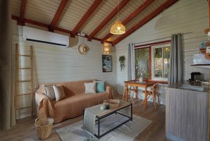 הבקתות מצוידות בטכנולוגיה מתקדמת עם טלוויזיה בלוויין של YES ושולחן אוכל מעוצב. במטבח תמצאו מכונת אספרסו עם קפסולות, מקרר וכיריים לכל צורך קולינרי. חדר הרחצה מציע אמבט ספא מרהיב עם מגבות רחצה רכות ושמפו ומרכך.