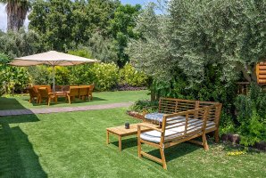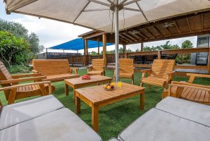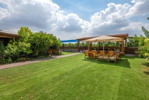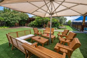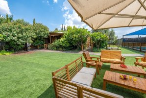 המתחם שלנו כולל בריכת שחייה פרטית ומגודרת, לצד בריכת זרמים, שמבטיחים רגעי רגיעה מושלמים. החצר החיצונית מצוידת בריהוט גן יוקרתי, פינות ישיבה ומיטות שיזוף, כמו גם מתקני חצר לילדים ועמדת מנגל BBQ (מותר).