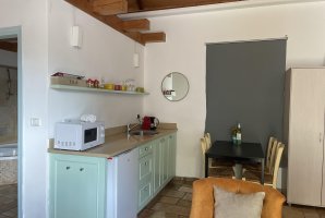 איזה אבזור קיים במטבח של תכלת בית של חופש?האבזור הקיים במטבח של תכלת בית של חופש: קומקום חשמלי, תנור, מכונת אספרסו / קפה, כיריים, מיקרוגל, מקרר.