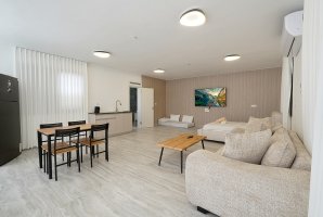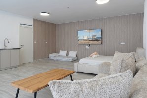 הסוויטה מאובזרת במסך LCD עם פרטנר TV, שולחן אוכל, ופינת ישיבה נוחה. תיהנו ממטבחון מאובזר הכולל קומקום חשמלי, מקרר קטן ומיקרוגל להכנת כיבוד קל. בחדר הרחצה תמצאו מגבות רחצה רכות, חלוקי רחצה, שמפו ומרכך לשימושכם האישי.