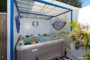 הנופש כולל בריכת שחייה פרטית ומגודרת, כמו גם ג'קוזי ספא שיעניקו לכם רגעי רוגע מלטפים. כל זאת במתחם חיצוני מפואר הכולל שולחן גינה, פינות ישיבה מרווחות ומיטות שיזוף מפנקות.