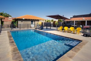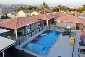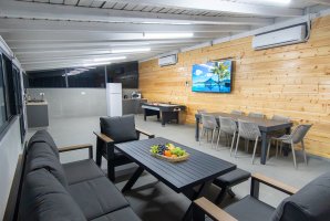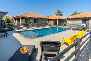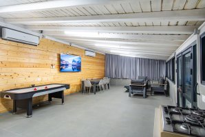 במתחם החיצוני תמצאו בריכת שחייה פרטית ומגודרת, מתקני חצר לילדים, פינות ישיבה נעימות ושולחן סנוקר חיצוני. בנוסף, תוכלו ליהנות משולחן הוקי אוויר ומעמדת מנגל BBQ (לא בשבת).