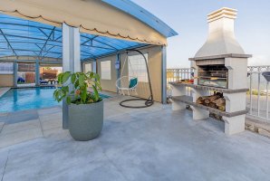 בשטח החיצוני תמצאו בריכת שחייה פרטית, מחוממת ומגודרת, לצד פינות ישיבה נוחות וריהוט גן חיצוני. ילדים יכולים ליהנות ממתקני חצר ומשחקי פינג פונג, בעוד המבוגרים יכולים להתפנק עם עמדת מנגל BBQ מושלמת לארוחות משפחתיות.