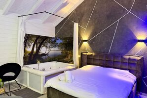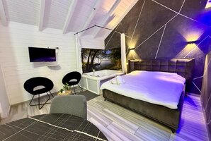 סוויטה זו מציעה יחידת אירוח מרווחת עם נגישות חלקית לנכים ואינטרנט אלחוטי מהיר. תוכלו ליהנות מבריכת שחייה פרטית מחוממת ומקורה, המעניקה חווית רחצה מושלמת בכל עונה. בנוסף, המתחם החיצוני המפואר כולל פינות ישיבה, מיטות שיזוף, ועמדת מנגל BBQ (מותר להשתמש רק באמצע השבוע).
