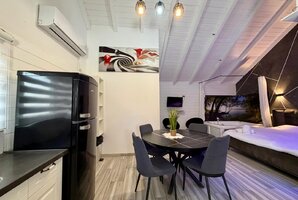 הסוויטה מצוידת במסך LCD, טלוויזיה בכבלים (HOT), ורצפת פרקט איכותית. המטבח המאובזר כולל כיריים, תנור, מיקרוגל ומקרר קטן, כך שתוכלו להכין ארוחות מפנקות במהלך שהותכם.