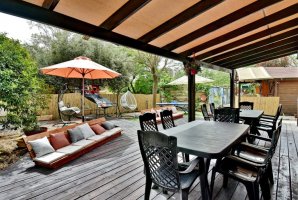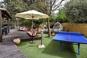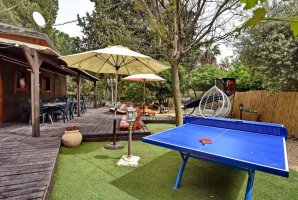 המתחם החיצוני מצויד בריהוט גן איכותי, כולל שולחן גינה, פינות ישיבה, מיטות שיזוף ועמדת מנגל BBQ. המקום מתאים לאירועים פרטיים ומפגשים מפנקים, עם דגש על שקט ושלווה (לא מקבלים מסיבות רועשות).