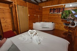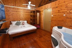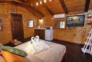 בבקתות העץ שלנו תמצאו מסך LCD עם HOT טלוויזיה בכבלים ו-Netflix, רצפת פרקט יוקרתית, ופינת ישיבה נוחה. המטבח מאובזר היטב עם מקרר, כיריים, מיקרוגל וקומקום חשמלי, כך שתוכלו להכין ארוחות קלות בנוחות.
