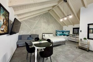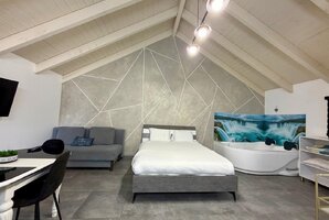 הסוויטה מתאפיינת בעיצוב מודרני ומפואר, עם ספת סלון נפתחת למיטה, מסך LCD וטלוויזיה בלוויין של YES. לרשותכם גם חיבור אינטרנט אלחוטי WIFI, כך שתוכלו להישאר מחוברים בכל עת. כמו כן, תמצאו במטבח קומקום חשמלי, מקרר קטן ומיקרוגל.