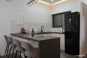 איזה אבזור קיים במטבח של שלווה עילאית?האבזור הקיים במטבח של שלווה עילאית: קומקום חשמלי, מיקרוגל, מקרר.