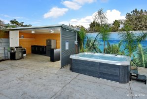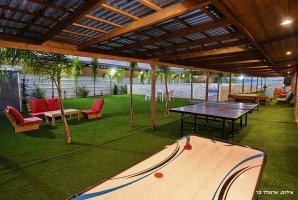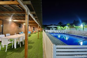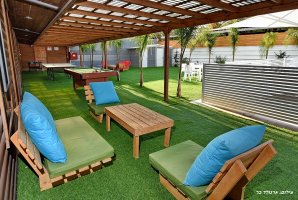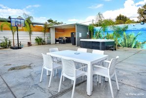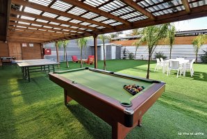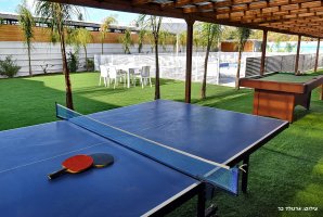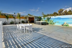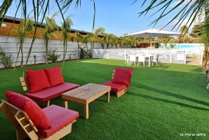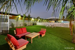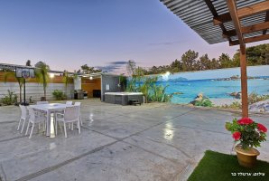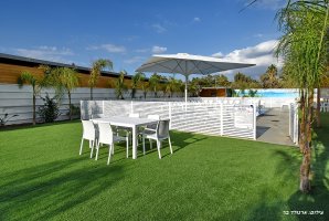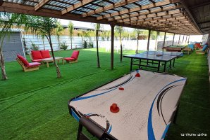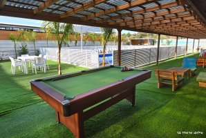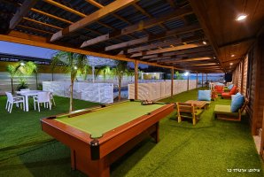 המתחם החיצוני מפנק במיוחד, עם בריכת שחייה פרטית ומגודרת, מתקני חצר לילדים ושולחן סנוקר חיצוני. בנוסף, תיהנו ממגרש כדורסל, עמדת מנגל BBQ ופינות ישיבה נוחות באווירה טבעית.